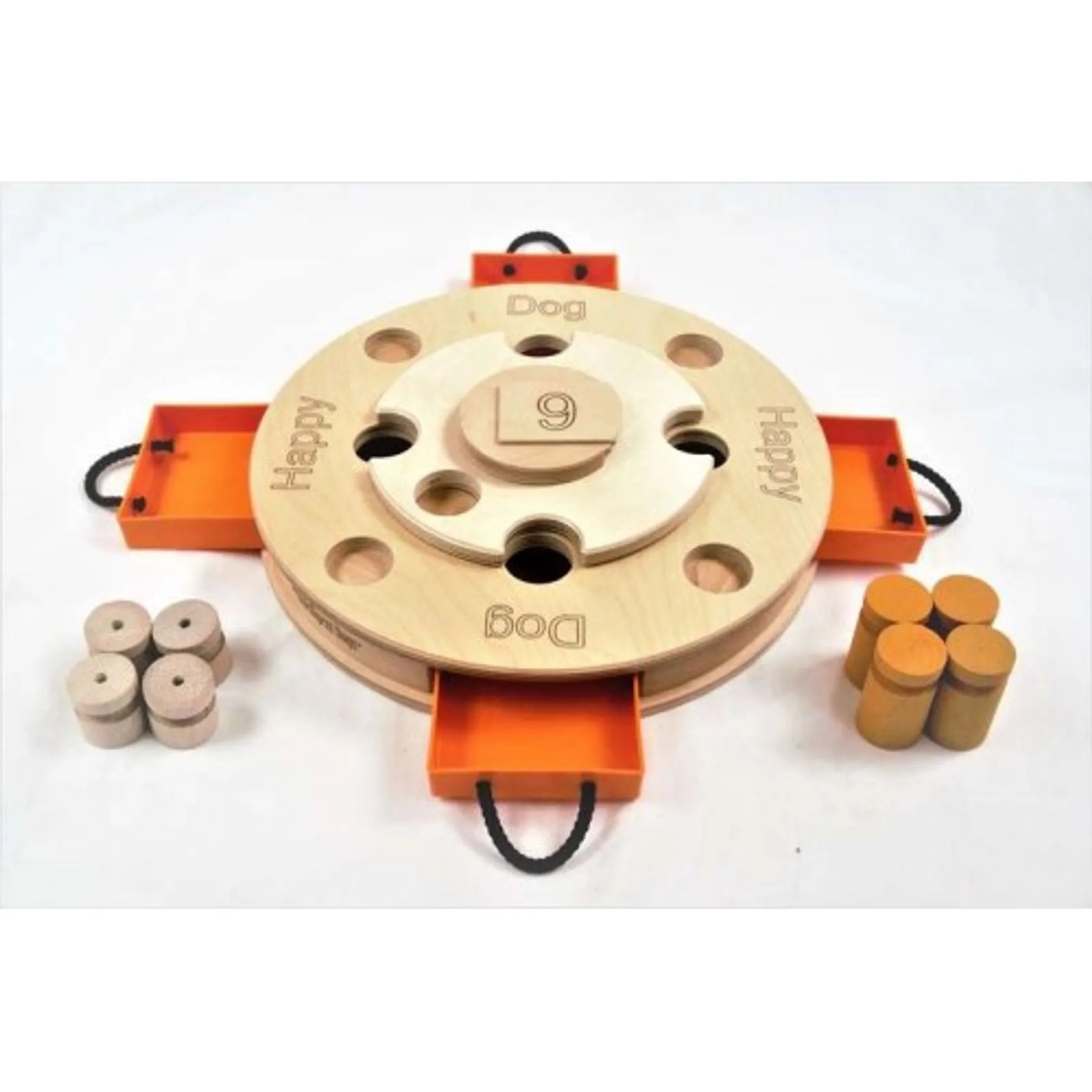 Length: 12.00 Width: 12.00 Height: 2.00 Birthday Cake Each set contains 4 orange cylinders for blocking 4 drawers and 4 regular size cylinders where treats are placed. After removing cylinders the dog can spin the circular part of the game to reveal more treats hidden inside. Happy Birthday! This is a special occasion puzzle that will be a great addition to the celebration of the birthday of your dog. By placing the sticker with number (1 to 18) provided with the package you can make this special day even more special by giving your loved one intelligent game that will exercise his mental and physical abilities and allow to spend quality time together. By adding and removing tokens you can adjust level of difficulty of these puzzles to age and experience of your dog. According to dog's behaviorists 10 minutes of mental stimulation with employment of interactive game equivalents to 1 hour of physical exercise. This is especially important for the dogs living in large cities where long walks are difficult and impossible, senior dogs with ailments that do not allow them for prolong outings and those living in cold climates where going outside can put animal's health at risk. . How to play: 1. Hide the treats in the openings beneath the cylinders, in the drawers and inside of indentations covered by circular part located in the center of the puzzle.