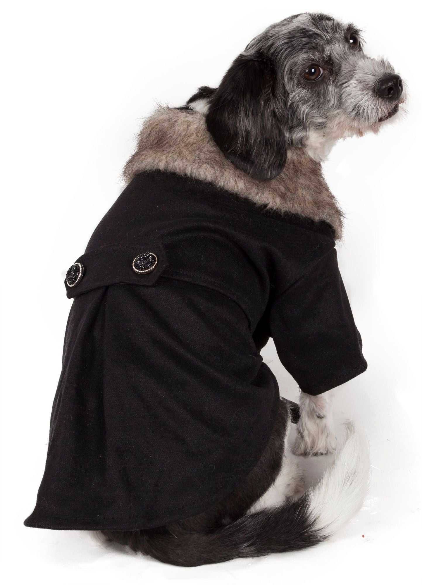 The Pet Life 'Coast Guard' Fashion Wool Dog Coat jacket is composed of 100% cotton wool and features a trendy dual buttoned accented strap along the backside and a cozy faux-fur collar. This pet coat also features snap button closure by the belly for easy on/off access and a leash slit holder behind the neck area. Available in multiple sizes.